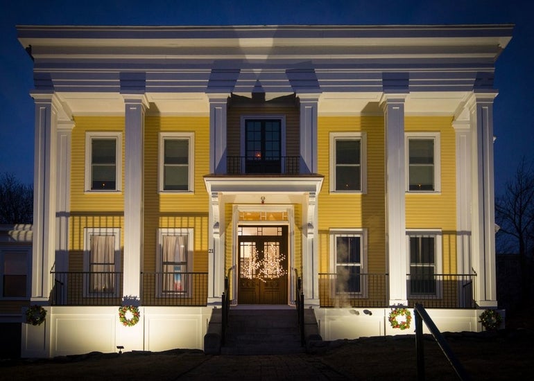 Renovations to the home, which was built in 1845, included a replacement of outdoor columns, a reinforced foundation, new siding, ceilings and lighting, and a new energy-efficient heating system. Efficient windows were installed, and bathrooms were upgraded.
