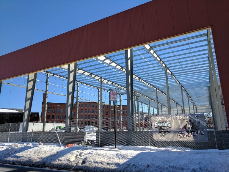 The $18-million facility is slated to open in August off Winter and Harding streets. The minor-league Railers, who will use the Ice Center as a practice facility, will begin play this October.