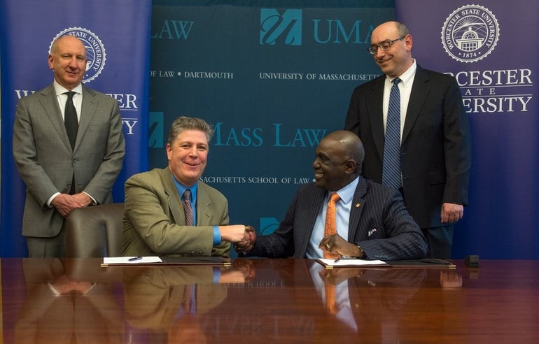 Worcester State is the latest Massachusetts college to join UMass Law in the program. The law school has previously signed such agreements with Becker College, Fitchburg State University, the Massachusetts College of Liberal Arts, UMass Boston, UMass Dartmouth and UMass Lowell.