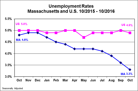 The Worcester numbers mark a decline from 3.7 percent in September and 4.8 percent in October 2015. The Framingham metropolitan division declined to 2.3 percent from 2.7 percent in September and 3.6 percent in October 2015.