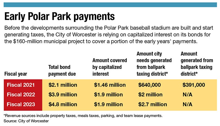 The City of Worcester’s team-friendly effort to pay off the $160-million cost of the Polar Park baseball stadium over 30 years is off to a rocky start.