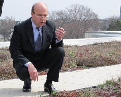 The tour capped off with a look at the dorm’s “living green” roof, the first of its kind in Worcester.