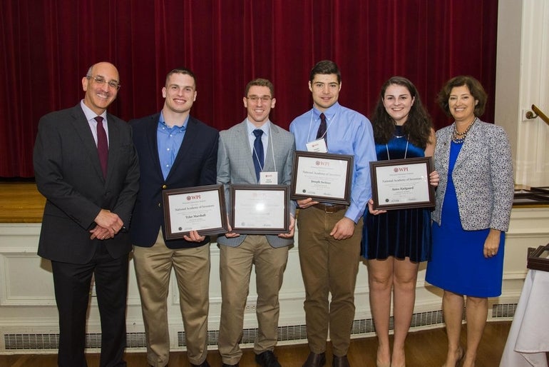 Hirschfeld helped honor the 42 students, as well as seven faculty members who were inducted into the WPI chapter of the National Academy of Inventors. Hirschfeld honored a mechanical engineering professor, Diran Apelian, as a fellow of the National Academy of Inventors. Apelian is the founding director of WPI’s Metal Processing Institute.