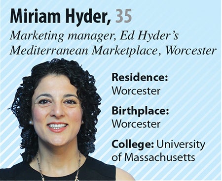 Since rejoining her family’s business in 2013, Hyder marketed its specialty food to an expanding customer base, resulting in a 20-percent sales increase in her first year. Hyder worked at Mediterranean Marketplace since childhood, leaving for a decade after college to gain other experience, including for minor league baseball team Worcester Tornadoes and Friendly’s Ice Cream.