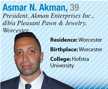Born as a first-generation American from parents Sabri and Meryem Akman – who left Turkey to give their children a better future – Akman moved from Webster Square to New York City for leadership roles at places like Bank of New York and Carnival Cruise Lines. He returned to Worcester and learned the jewelry trade from his father before striking out on his own with Pleasant Pawn & Jewelry in 2005, seeing the rising demand in the pawn industry. Akman markets his custom jewelry and focuses on superior customer service, a friendly environment and workmanship.