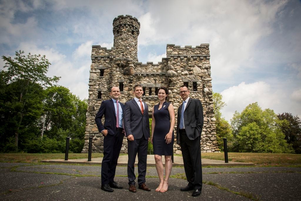 In preparation for WBJ taking their group photos around 10 cultural destinations of Central Massachusetts, I encouraged all the photo teams to get excited and think of creative ways to bring liveliness to the proceedings. For Team Bancroft – Matthew M. Copeland, Courtney E. Pelley, Michael Alden and David Gilchrist – I suggested maybe thinking of trying to do a “Game of Thrones” theme, since the tower has a medieval feel and that is one of my favorite shows. To my shock and befuddlement, at least one member of Team Bancroft doesn’t watch the show.