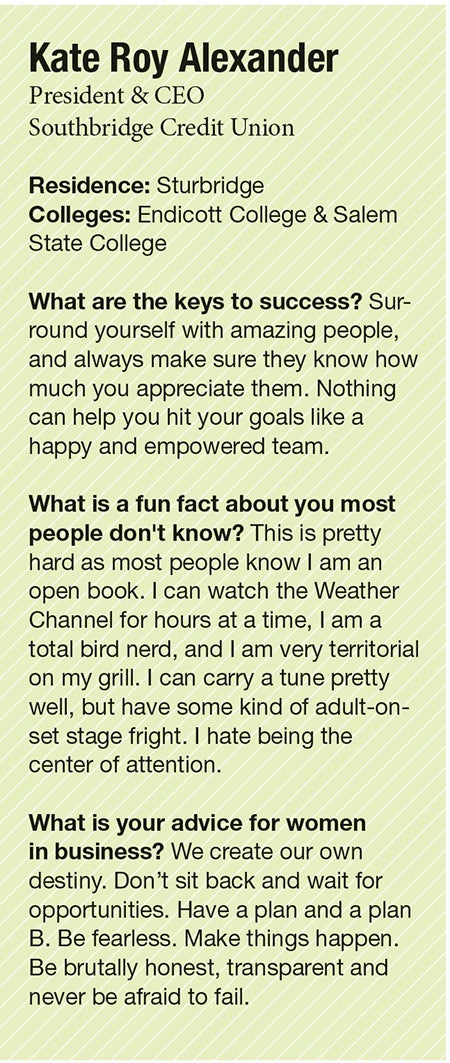 Alexander, president and CEO of Southbridge Credit Union, has worked with or in smaller businesses for most of her career. She started at Southbridge Savings Bank in 2003, which is now Cornerstone Bank. She left the small business world for a while to take a corporate job at Framingham office supply retailer Staples Inc., but she found herself missing the connectivity of small institutions and the ability to truly participate in the local community.