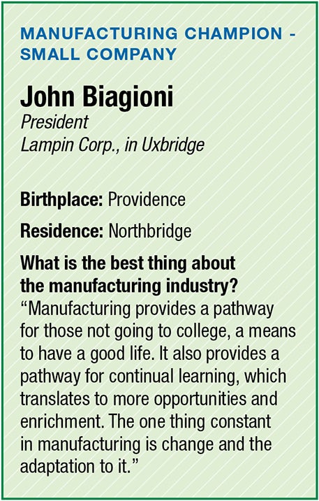 At a time when manufacturers across the United States are being bought and stripped for parts by private equity firms, Biagioni has placed a can-do attitude and an employee-first mantra at the center of Lampin’s mission. Since taking over as the Uxbridge-based company’s president in 2022, he has worked to secure a future for its owner employees at a time when the national industry workforce is shrinking, even growing the firm through acquisition.