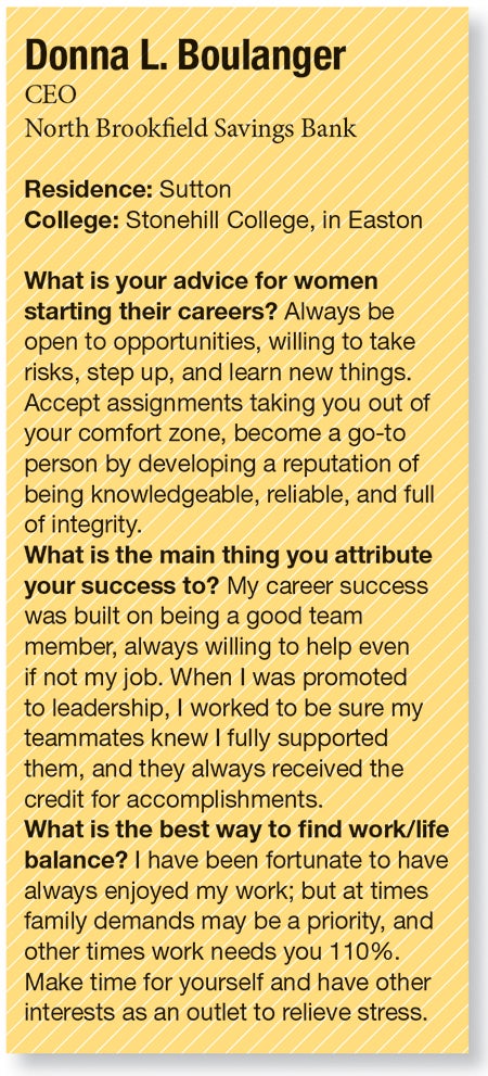 Boulanger was appointed CEO of North Brookfield Savings Bank in 2008, marking the first time a woman led the bank since it was founded in 1894.