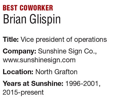The impact Brian Glispin, vice president of operations at North Grafton’s Sunshine Sign Co., has on the family-run business is impossible to quantify.Â