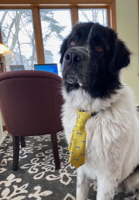 Slowey McManus is a pet-friendly company, so all pets (Dougie, Tess, Evie) are welcome to join online staff meetings. Rorschach, the dog of principal partner Jim McManus, is one of the best co-workers in Central Massachusetts because he’s a good boy, never complains, and is always wagging his way through.