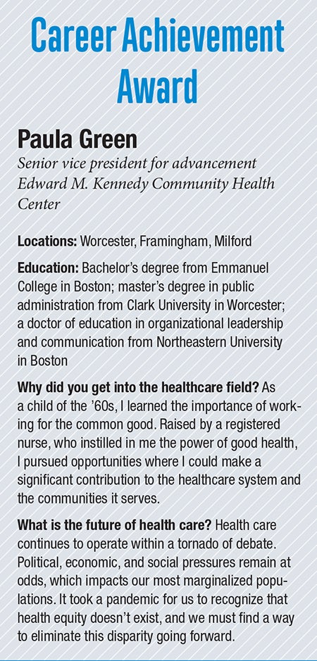 Paula Green has led advancement at Edward M. Kennedy Community Health Center for more than a decade, and the exponential growth of its healthcare services in Milford, Framingham, and Worcester is itself a sparkling accolade.