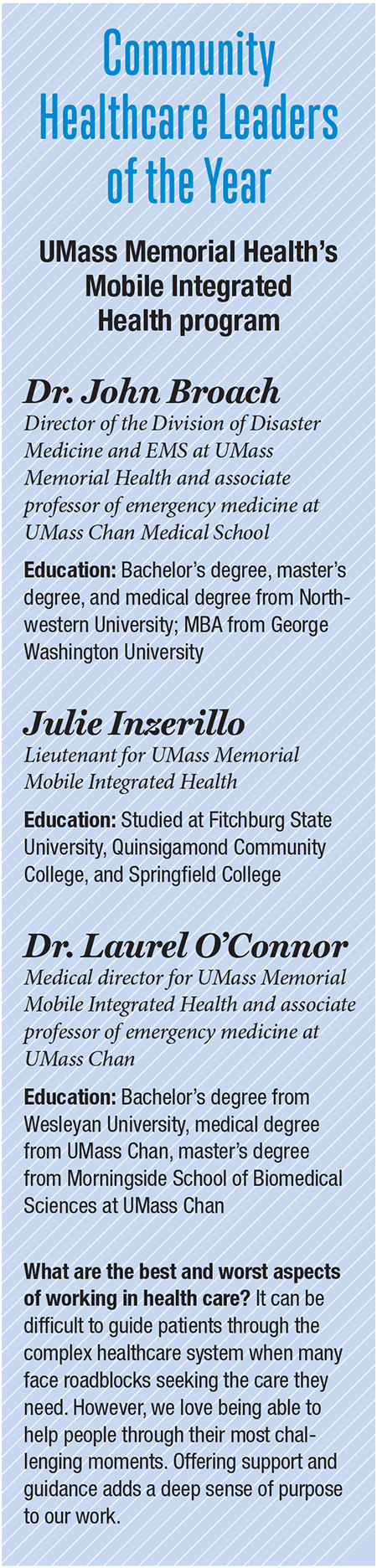 Those living conditions can sometimes provide important clues about a patient’s health or risk factors, said Dr. John Broach, director of the Division of Disaster Medicine and EMS at UMass Memorial Health. He provides administrative oversight to the program while O’Connor oversees most day-to-day operations.