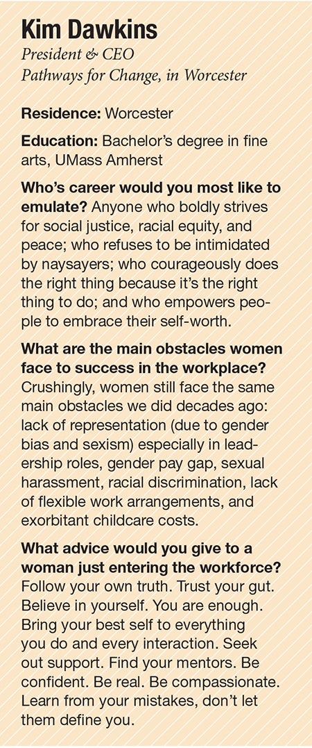 “When you meet somebody and they emanate genuine sincerity, that’s Kim,” said Michelle Smith, CEO of AIDS Project Worcester, where Dawkins has been treasurer on the board of directors for nearly a decade.
