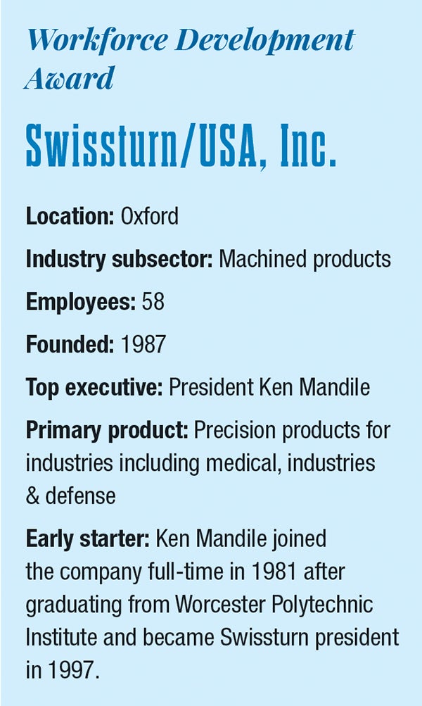 The company has worked with Auburn-based Massachusetts Manufacturing Extension Partnership, or MassMEP, which has helped Swissturn improve its organizational chart, job descriptions and other human resources aspects. In other cases, it has worked with other machine shops on collaborative projects to use job training grants, or hired through the Worcester-based Manufacturing Advancement Center Workforce Innovation Collaborative, known as MACWIC.