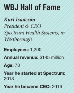 By 2016, Isaacson was manning the helm of what is today the sixth-largest human services nonprofit in Central Massachusetts, providing services and support to those living with addiction. That year, Spectrum generated $69.77 million in revenue, a figure he has helped to more than double as the system projects to bring in $145 million this fiscal year.