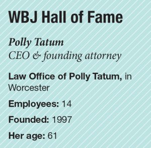 With a focus on helping clients with divorce mediation and conflict resolution, she started the Law Office of Polly Tatum in Worcester as the sole practitioner in 1997. Now, nearly 30 years later, she has transitioned her firm to estate planning, probate, and elder law, grown her team to 14, and serves clients throughout Massachusetts.