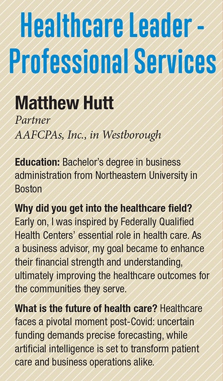 As partner and healthcare division leader at Westborough accounting firm AAFCPAs, Matthew Hutt helps medical providers answer complicated questions. Healthcare providers, especially smaller ones, have difficulty thinking about long-term financial planning and navigating complex payment structures. That’s where Hutt and his team of tax professionals step in.
