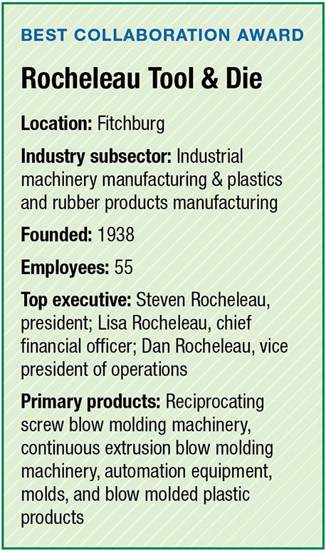 Rocheleau Baker, a fourth-generation member of the family-owned business founded by her great-grandfather in 1938, said collaborative relationships of all sorts have been a key to the company’s success for decades. That’s true on the international scale, since the company makes blow molding and automation machines for plastics and packaging companies around the world. It’s true locally as well, since Rocheleau manufactures containers for more than 100 New England dairies and orchards.