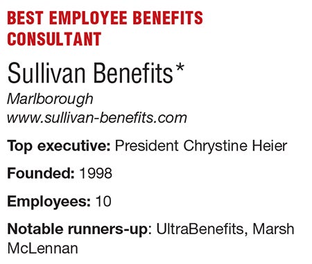 With a team of 10, Marlborough-based Sullivan Benefits offers deep industry experience in employee benefits consulting to its mid-market companies. Chrystine Heier, founder and president of Sullivan Benefits, said her employees average 29 years in the field and 12 years with the company and include benefits analysts, client consultants, and wellness experts.