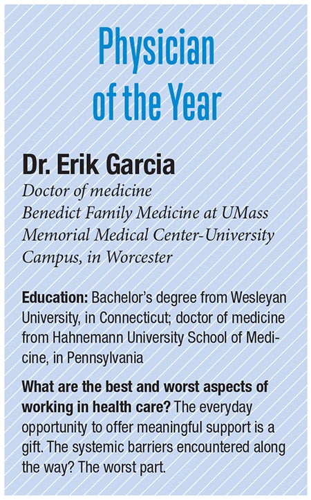 In addition to his work as an internal medicine physician at UMass Memorial Health in Worcester, Garcia works closely with mobile medical clinic Road to Care. The van, staffed with UMMH providers, offers free medical care to the area’s unhoused population and those with active substance use disorders.