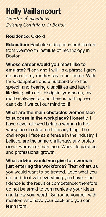 After graduating, Vaillancourt spent a decade building her career at various architectural firms in Boston, rising from entry level to project management positions. Then, she faced a crossroads. She and her husband were living in Worcester and planning to start a family. She recalls wondering, “Do I want to continue commuting into Boston while also trying to raise a family?”