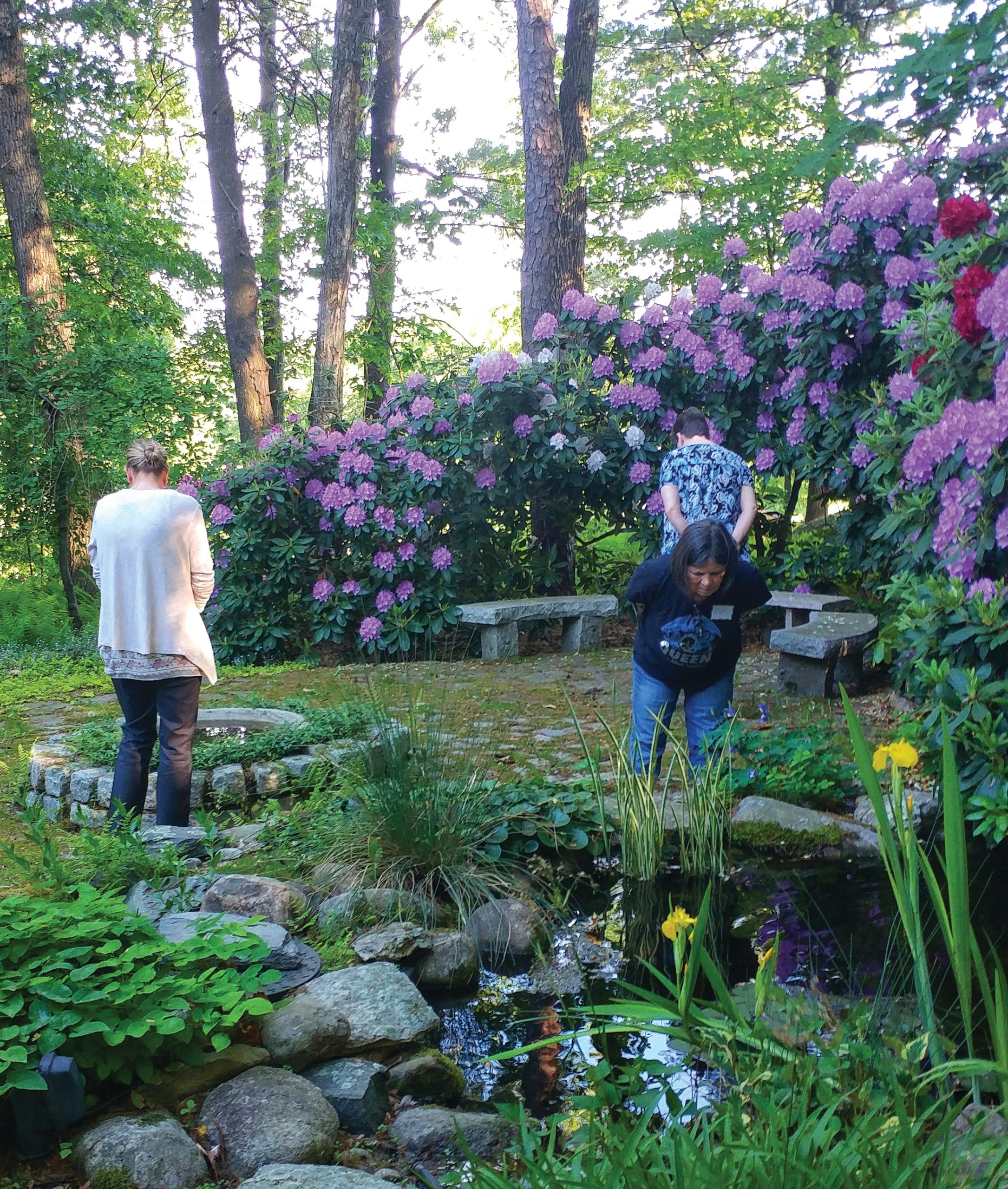 Located down a wooded driveway on Bolton Road south of the town center, the garden is purposefully the opposite type of environment from what can be a cold and sterile conditions in a hospital or medical office. Even after two acres were donated for the Healing Garden – along with seed money to get the organization off and running – the gardens still required 10 years of work and more funding to get established, with benches and rock outcroppings in some areas, along with a pollinator’s garden and sculptures that dot the property.