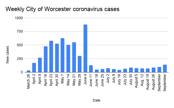 Just over a week into September, Worcester has already seen a major jump in the number of reported coronavirus cases.